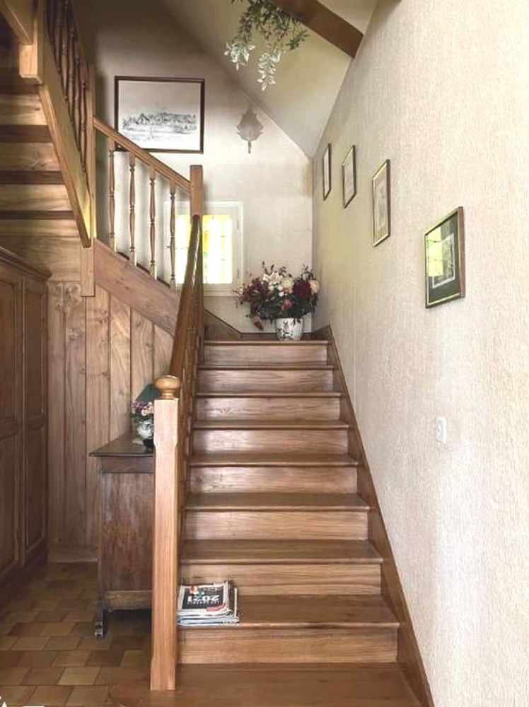 Etage desservi par bel escalier en orme : palier, chambre, salle d'eau avec douche/wc/dressing, autre chambre, salle de billard, espace rangements (possibilité création chambres supplémentaires).