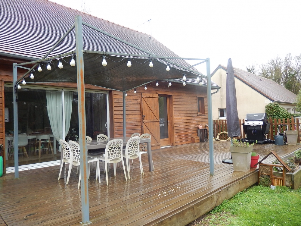 Vous entrez dans une atmosphère chaleureuse et boisée vers un vaste et lumineux salon- salle à mangée-cuisine ouverte équipée aménagée de 48 m², une arrière cuisine- zone de stockage, une buanderie , un bureau de 20m², trois belles chambres avec placards, une salle d'eau double vasques, un wc indépendant et un dressing dans l'entrée.