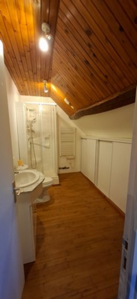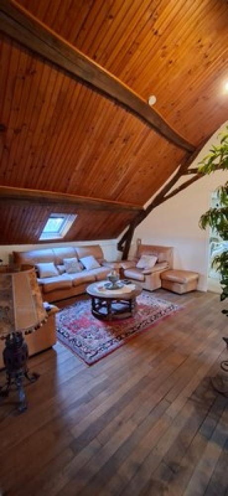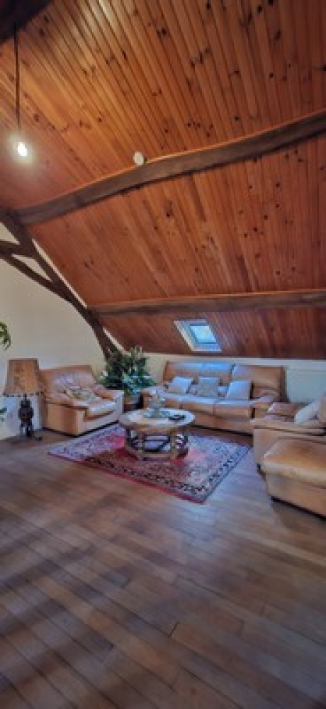 Au premier étage : La pièce palière faisant office de segond salon donne accès à trois chambres et une salle d'eau avec wc.