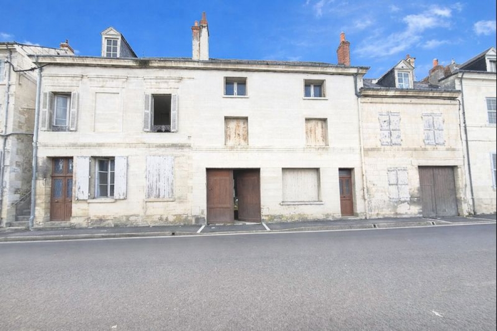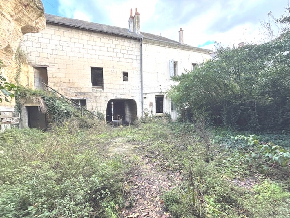 Centre Loches, Maison ancienne de ville de 110 m² à restaurer avec autre maison mitoyenne à refaire intégralement avec cour et caves.