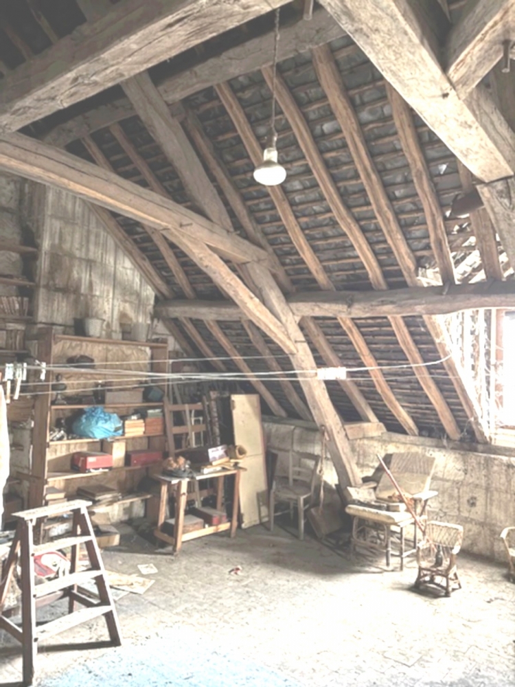 Rez-de-chaussée : une entrée avec carreaux de ciment, salon/séjour avec ancienne cheminée de 26 m², cuisine de 17 m², arrière-cuisine. Etage : pallier, trois chambres, salle d'eau. Grenier. Attenant : maison à restaurer entièrement. Accès véhicule via le porche donnant sur une cour et petit jardin. Grandes caves.