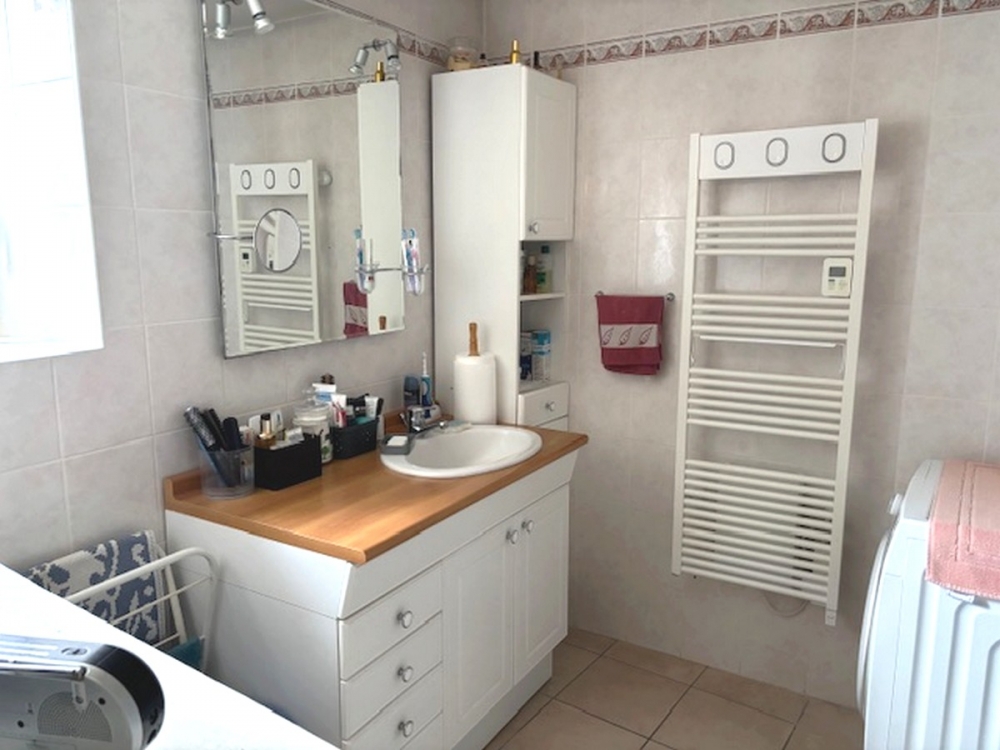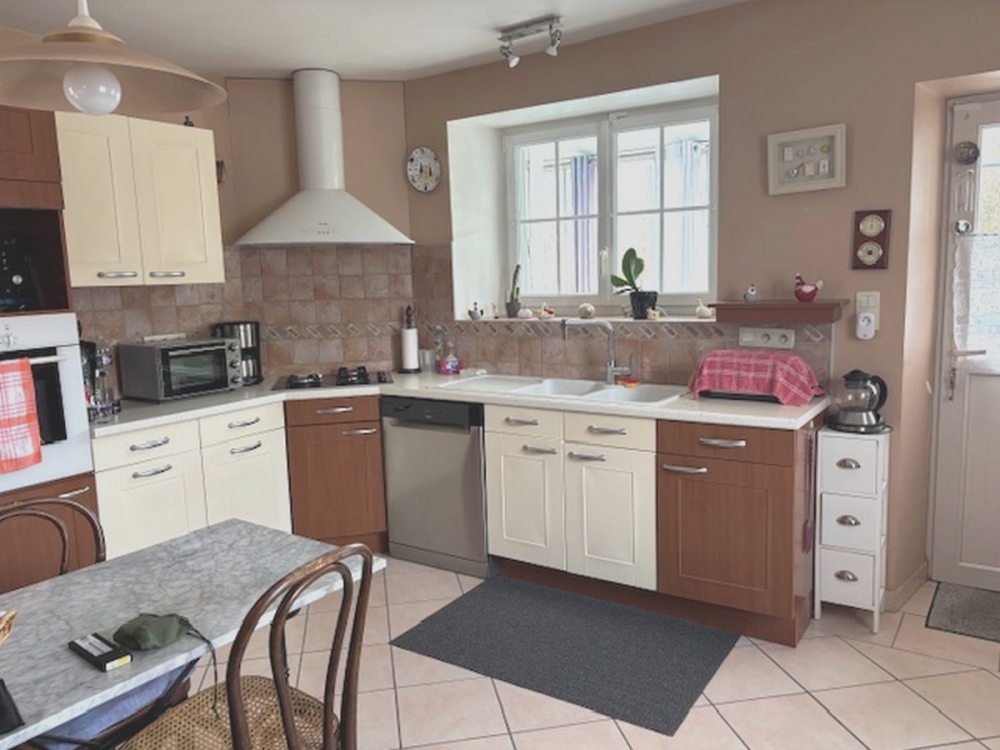 Rez-de-chaussée : entrée sur séjour/salon ouvert sur cuisine aménagée de 38 m² équipé d'une climatisation air/air, verrière, dégagement desservant une chambre avec dressing, salle d'eau, wc avec lave mains, garage attenant avec porte motorisée donnant sur cellier/cave et sur une cuisine d'été de 31 m².