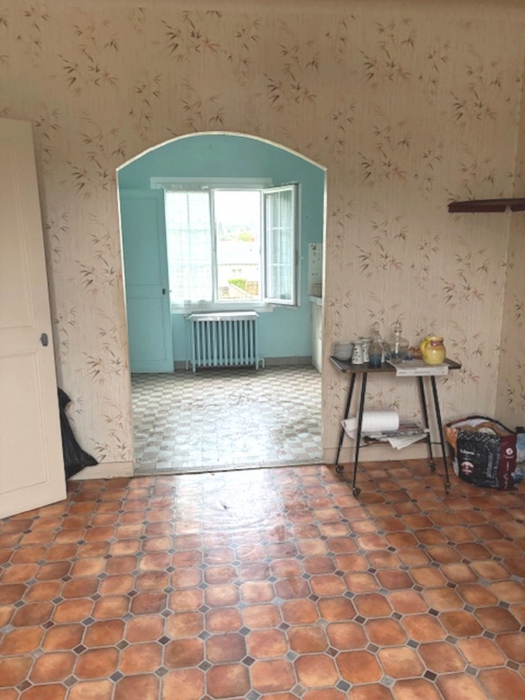 A 2 kms du centre ville de Loches, maison avec sous-sol surélevé avec intérieur à restaurer, composé sur 54 m² : d'une entrée sur couloir, séjour/salon, wc, deux chambres avec parquet. Combles isolés en partie aménageable.
