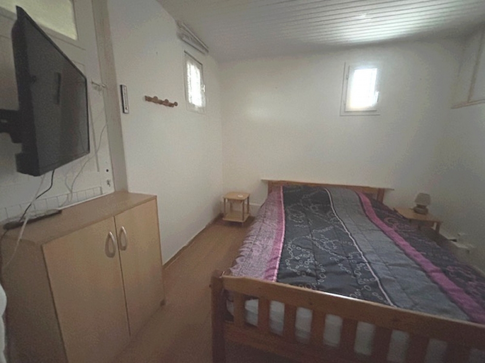Au rez-de-chaussée : un séjour, salle d'eau/wc, chambre, cuisine aménagée et équipée.