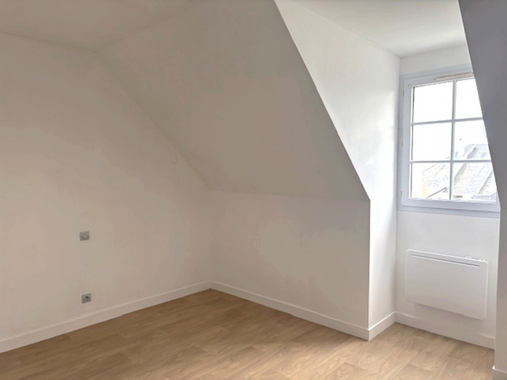 Rez-de-chaussée : entrée sur séjour avec poêle à bois ouvert sur cuisine aménagée, couloir desservant une chambre avec dressing, salle de bains, wc.