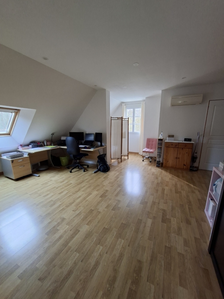 À l'étage : Une grande mezzanine de 38 m² idéale en espace bureau, salle de jeux ou coin nuit, 2 chambres, une salle d'eau avec wc, climatisation réversible.