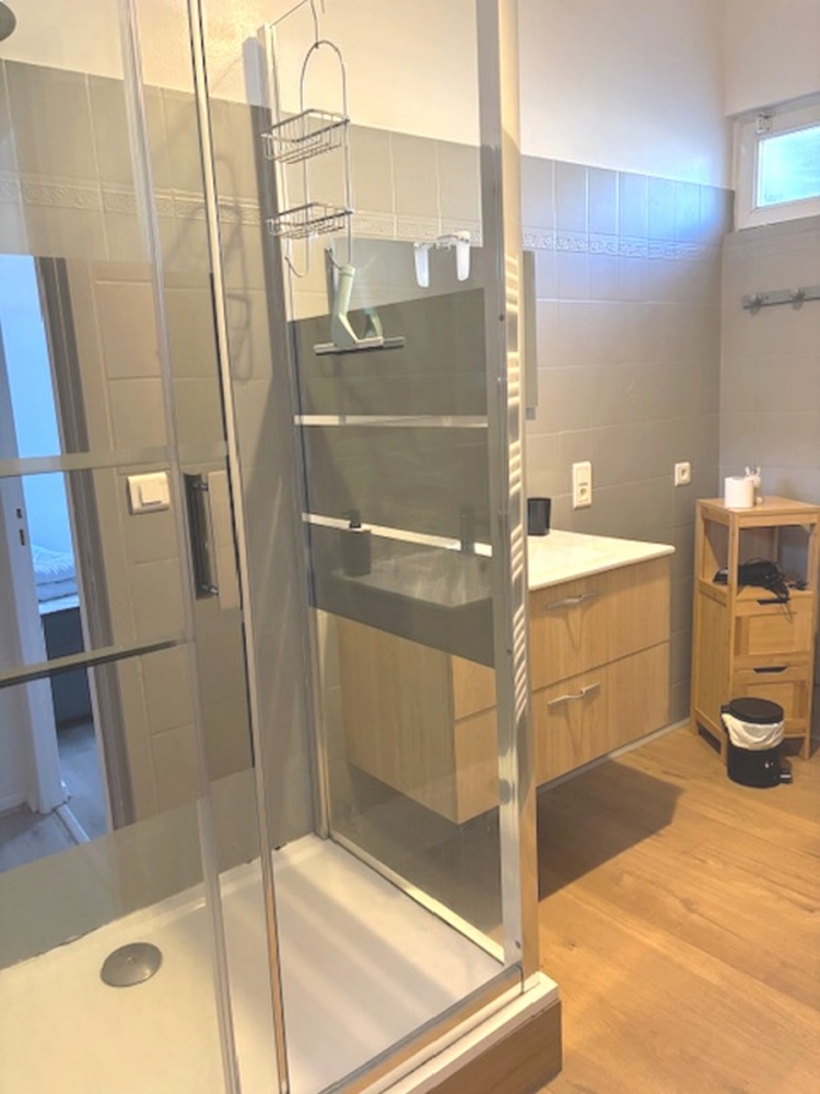Au rez-de-chaussée d'une entrée sur séjour ouvert sur cuisine aménagée et équipée de 30 m², pièce/rangements, wc avec espace buanderie.